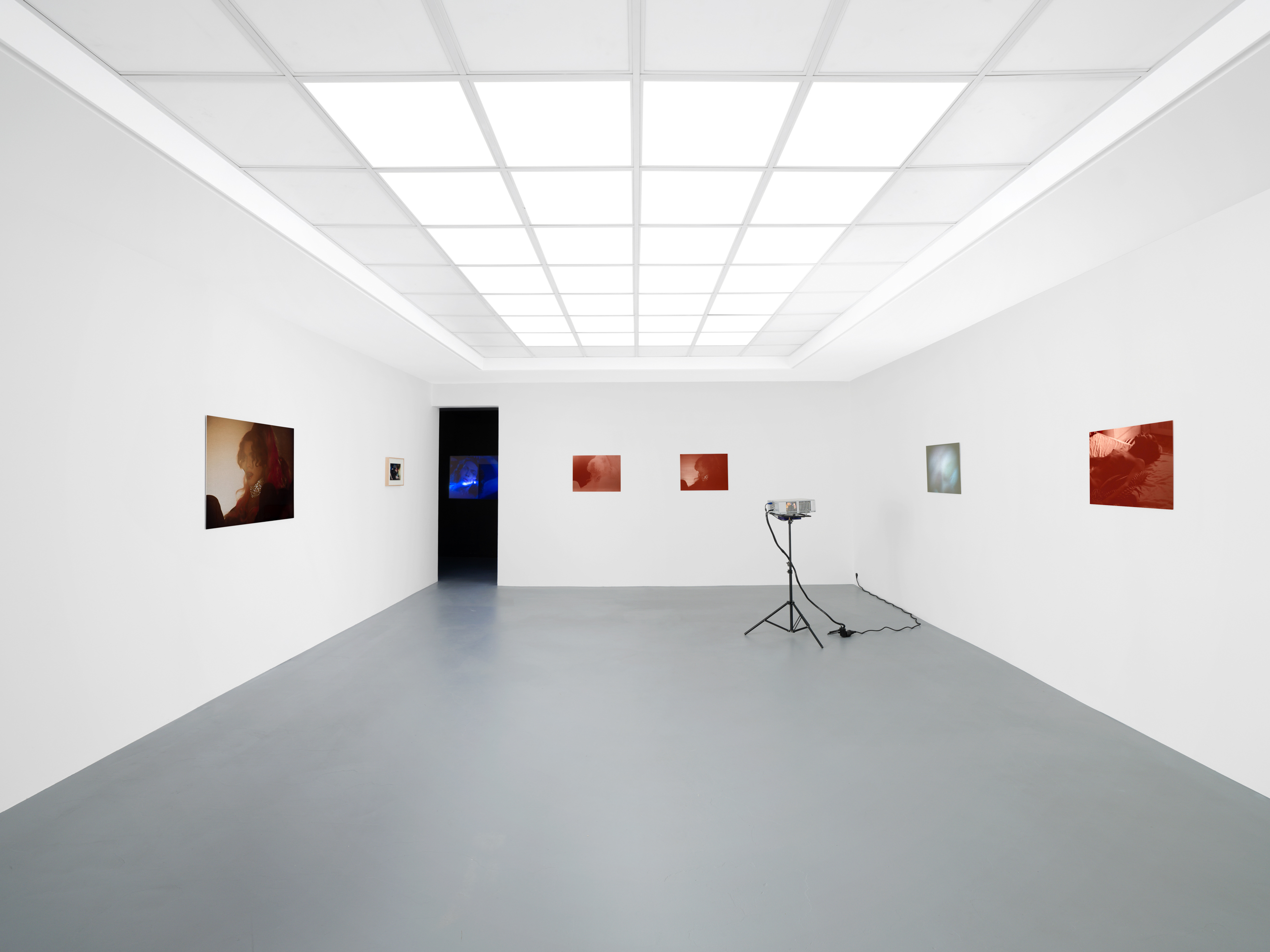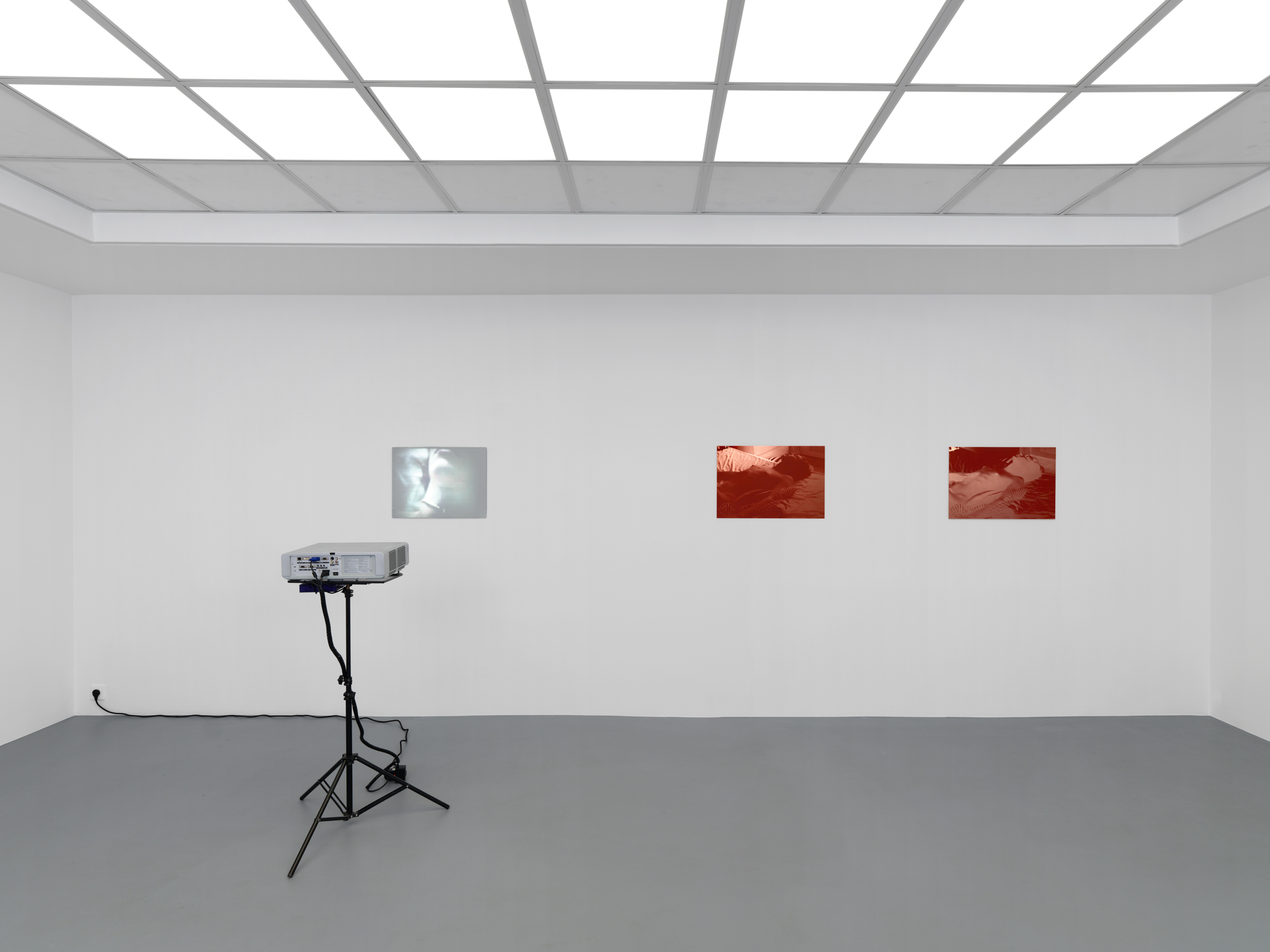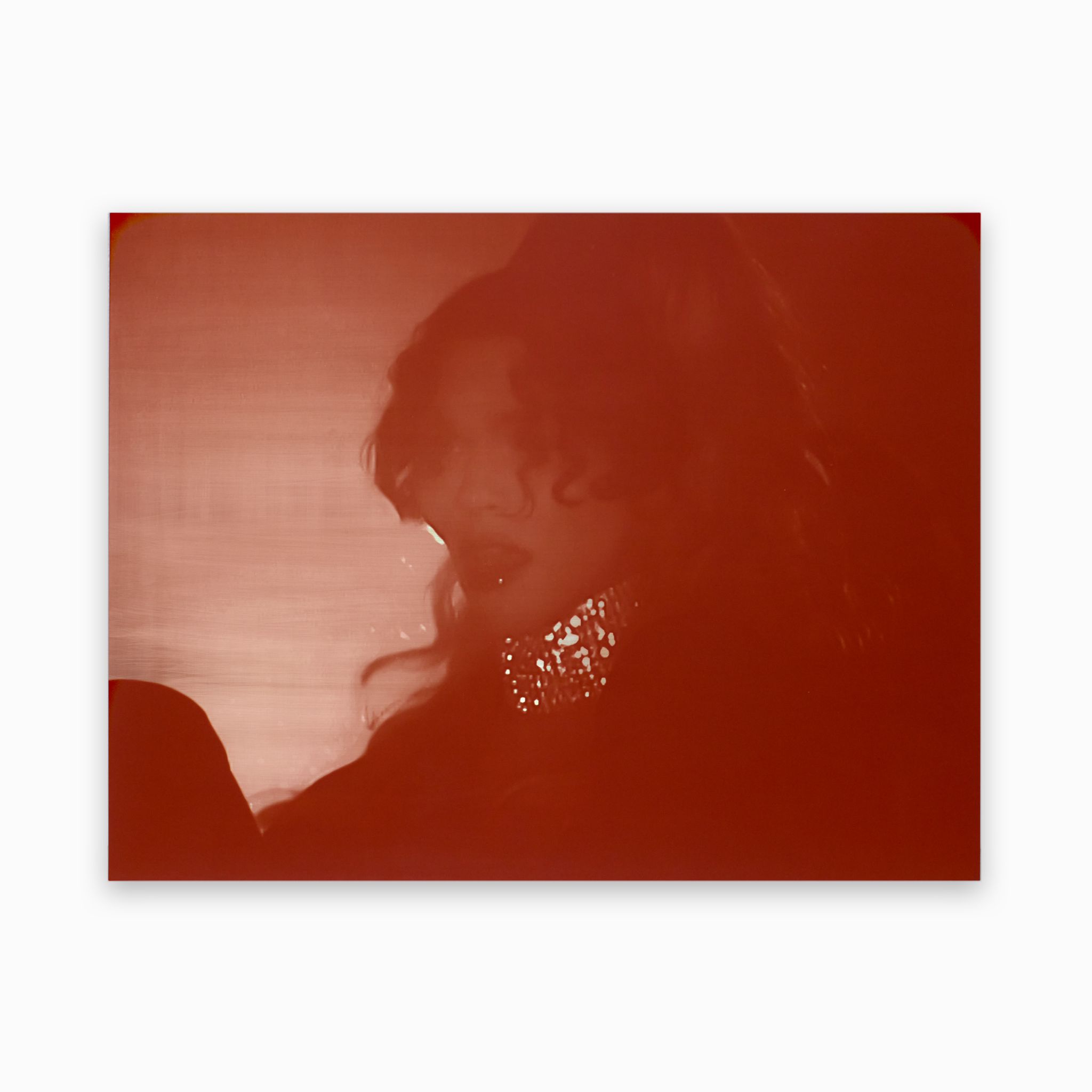 In Mexico City, Chait visited a master printer of photogravure, a nineteenth century printing process in which a copper plate is etched using a thin red gelatin tissue resist. In the studio, Chait was drawn to the unetched plates, as objects, mid-process. In the visceral hues of iron oxide, the gelatin resist forms a spectral image that hovers on the copper. What dream centers on two pairs of such objects, each a positive and negative version of the same image. The exhibition takes its name from the first, a still from a video Chait shot on the set of one of SOPHIE’s music videos. In it, Sophie appears in a glamorous maw, her face poised and lucid among dramatic lighting and the shadows of dancers. The second pictures Sophie lying softly on a bed, nude, transcendent and open. These works are painterly and intensely material. They offer up a liminal space in which the image isn’t set—it is undone, still open to chance and vulnerable to time.