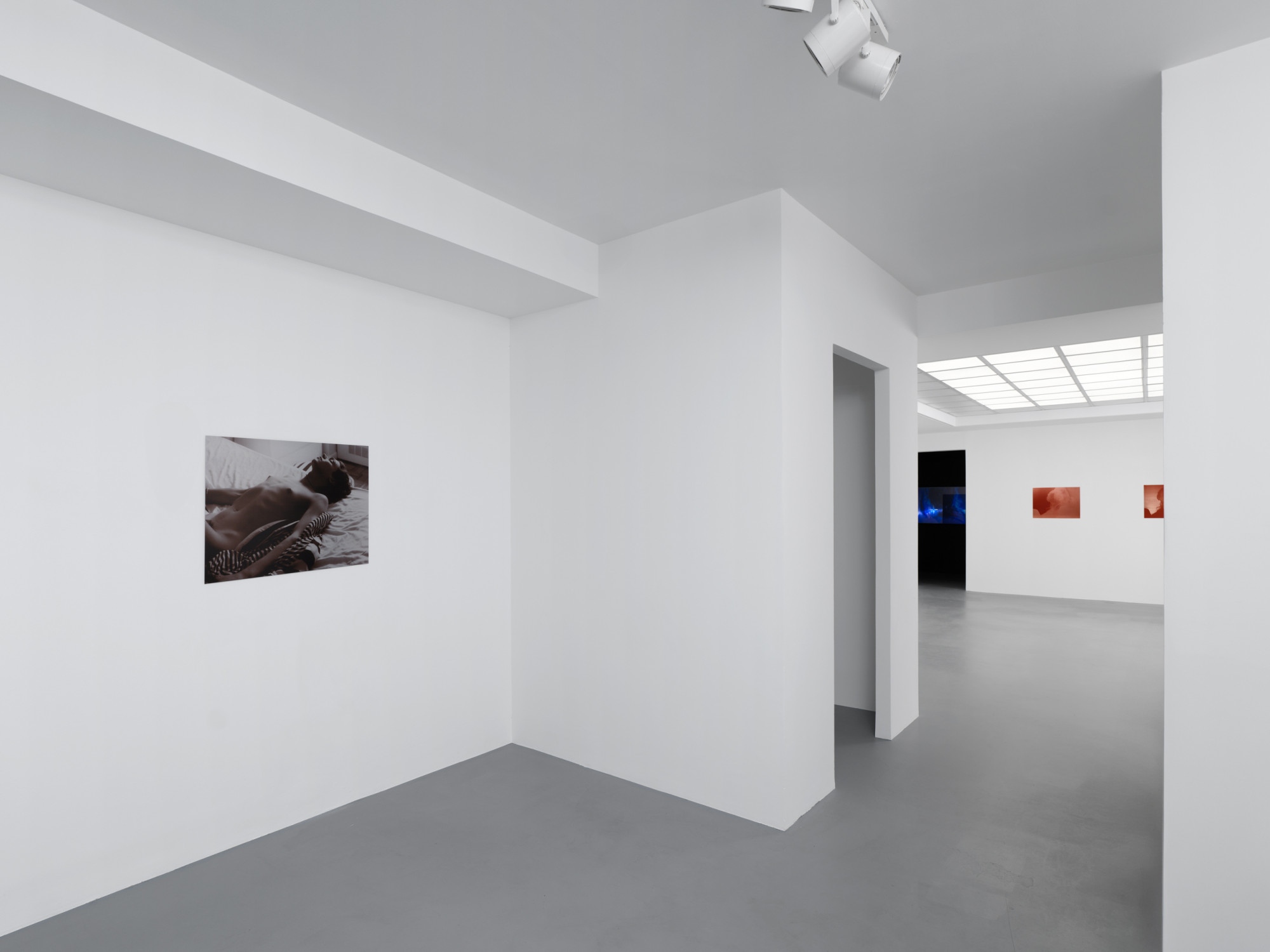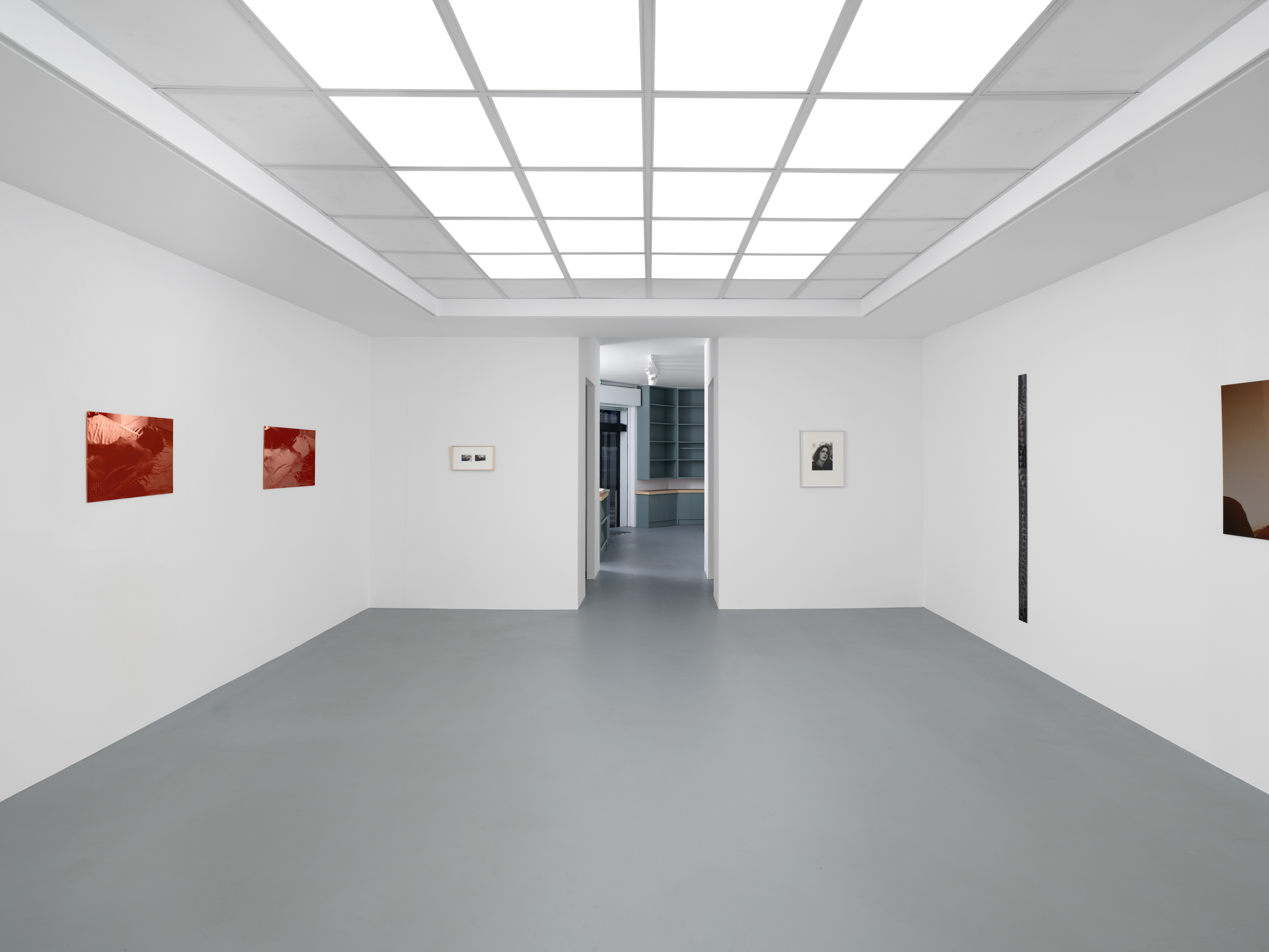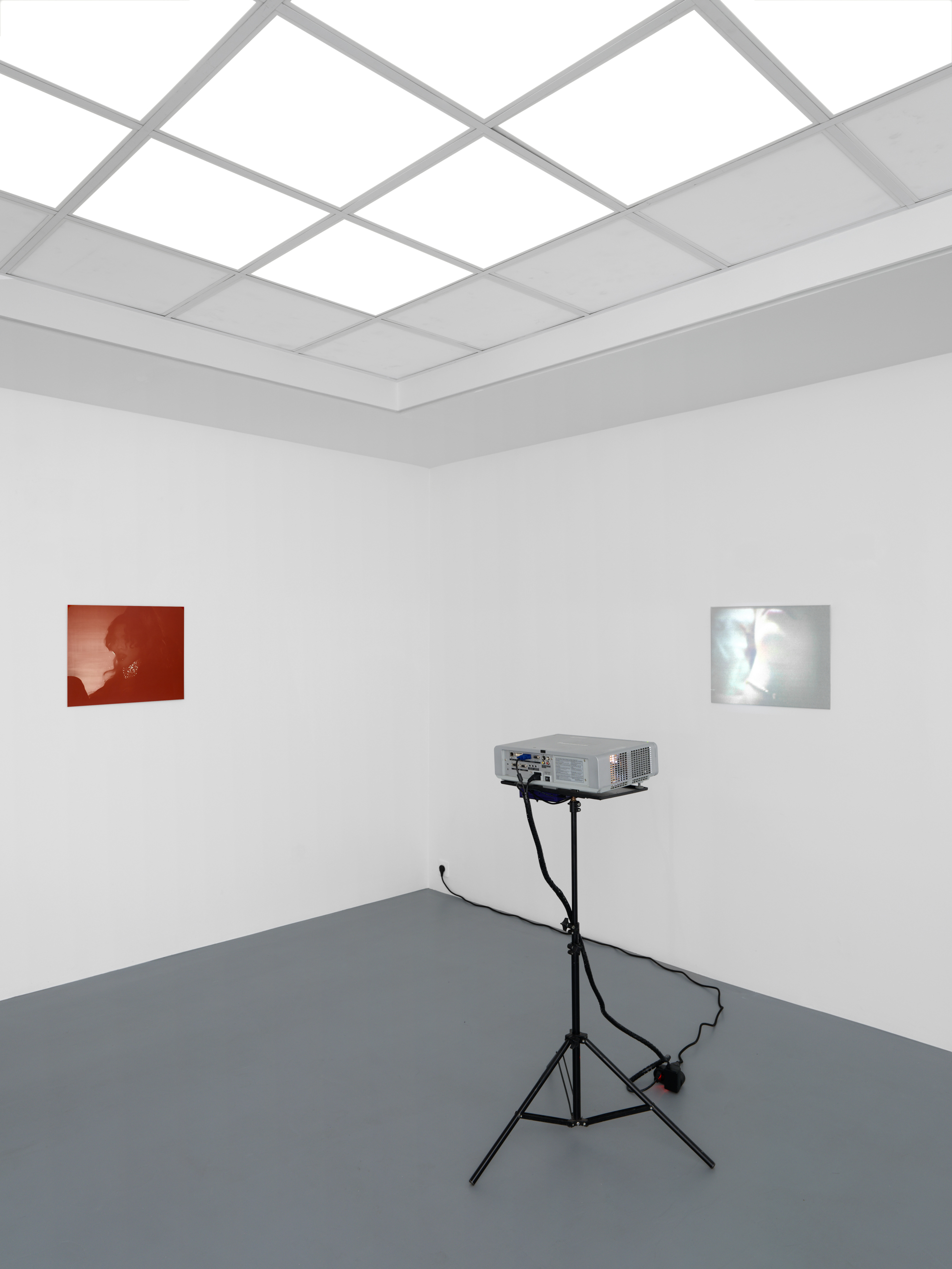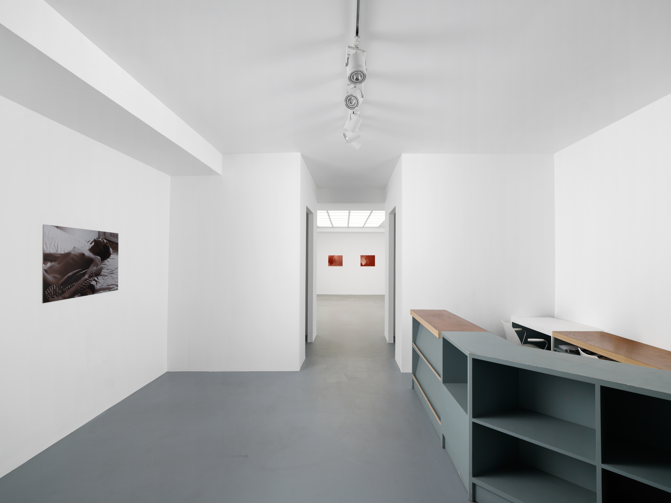 In Mexico City, Chait visited a master printer of photogravure, a nineteenth century printing process in which a copper plate is etched using a thin red gelatin tissue resist. In the studio, Chait was drawn to the unetched plates, as objects, mid-process. In the visceral hues of iron oxide, the gelatin resist forms a spectral image that hovers on the copper. What dream centers on two pairs of such objects, each a positive and negative version of the same image. The exhibition takes its name from the first, a still from a video Chait shot on the set of one of SOPHIE’s music videos. In it, Sophie appears in a glamorous maw, her face poised and lucid among dramatic lighting and the shadows of dancers. The second pictures Sophie lying softly on a bed, nude, transcendent and open. These works are painterly and intensely material. They offer up a liminal space in which the image isn’t set—it is undone, still open to chance and vulnerable to time.